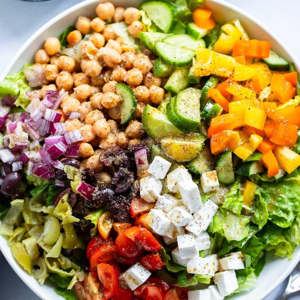 This salad isn't just a feast for the eyes; it's packed with nutrient-dense ingredients that support overall health. From the crisp romaine lettuce to the colorful array of vegetables, each component is carefully chosen for its health benefits. The addition of chickpeas and feta cheese not only adds a protein boost but also brings a touch of Mediterranean authenticity to the dish.