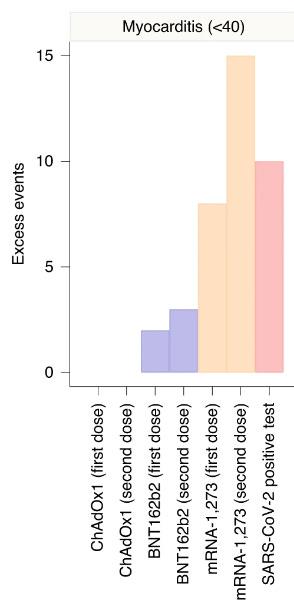 A comprehensive study from England clearly demonstrated vaccine myocarditis to be more common than COVID19 myocarditis in age < 40 despite the fact this study greatly overestimates COVID19 myocarditis rates because it underestimates the total number of COVID19 infections.