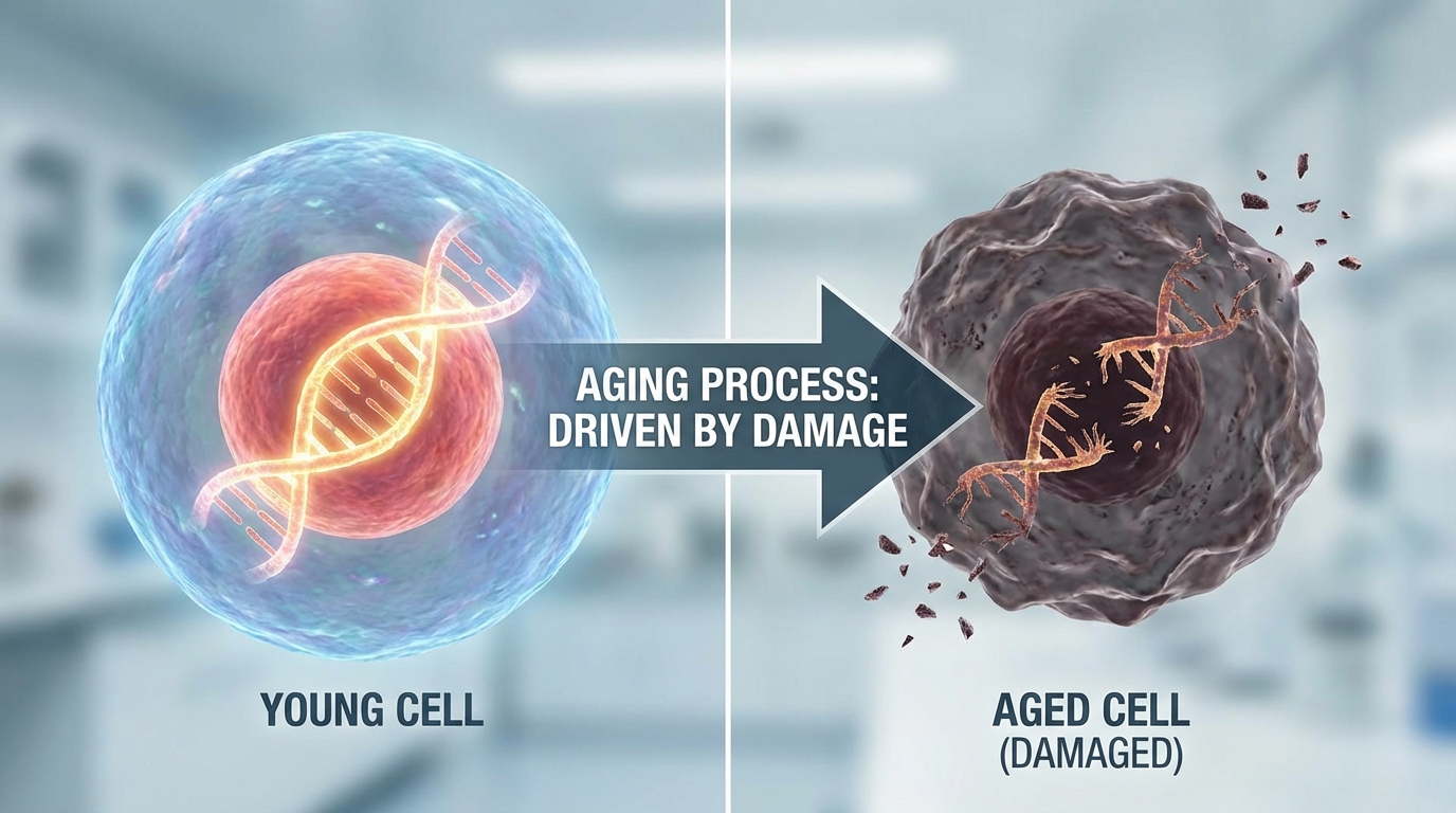 The aging process is driven largely by oxidative stress, often described as "cellular rust". This daily wear and tear occurs when unstable free radicals damage your cells and DNA.
