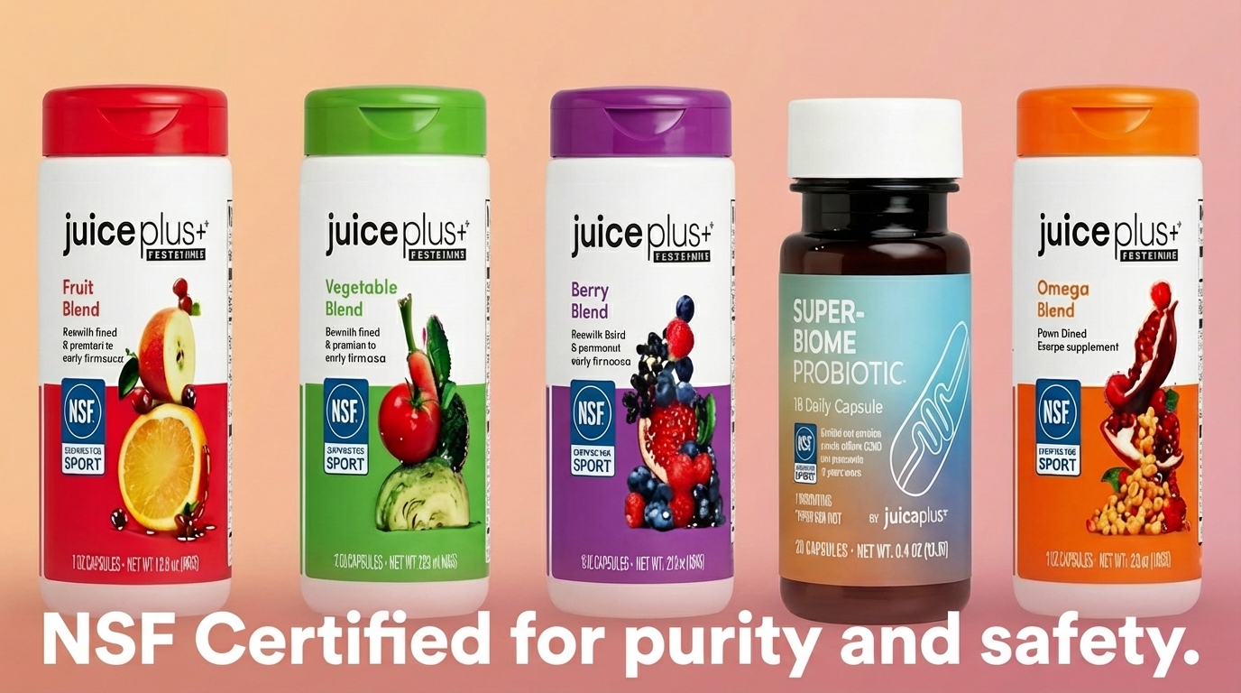 - Juice Plus+ Fruit, Vegetable, and Berry Blends: These whole-food concentrates provide the foundational micronutrition of over 30 different plants. Clinical research confirmed by 20 published studies indicates these blends effectively neutralize free radicals and protect DNA integrity.