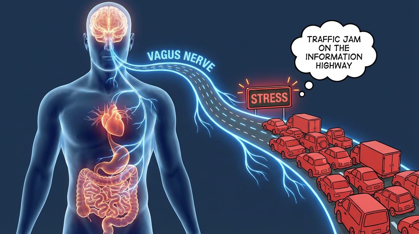 Chronic stress is a major hidden factor in our health. It's more than just feeling overwhelmed. Stress has real physical effects. It can stop our best efforts to be healthy. Think of the vagus nerve as your body's information highway. It links your brain to your gut, heart, and other vital organs. Too much stress is like a traffic jam on this highway. Important messages get blocked.