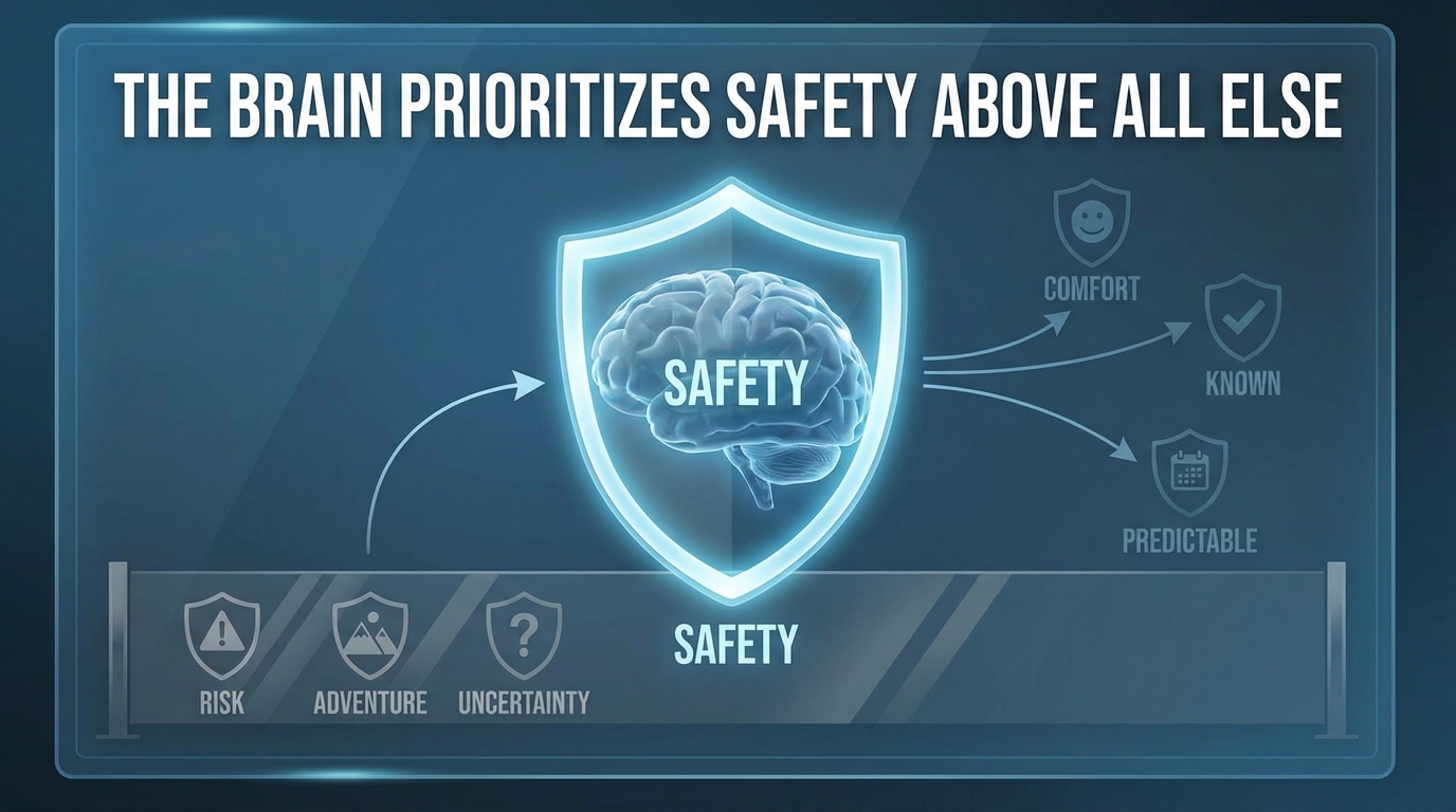 Because the brain prioritizes safety above all else, it follows two rules that often sabotage our modern goals: